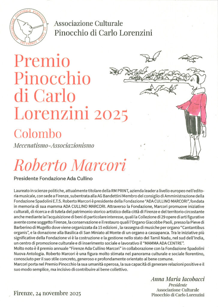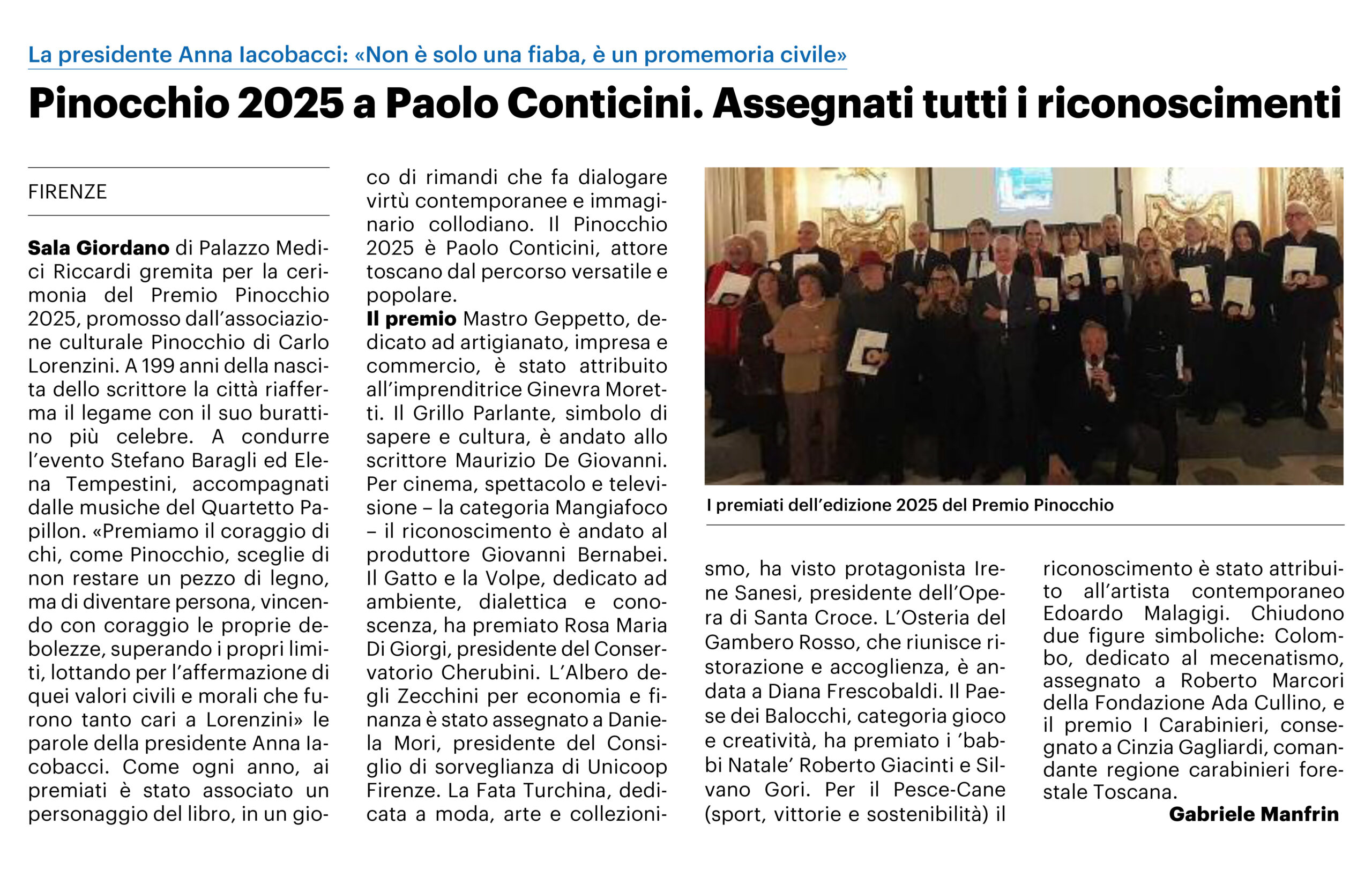 A Palazzo Medici Riccardi consegnati i riconoscimenti del Premio Pinocchio 2025